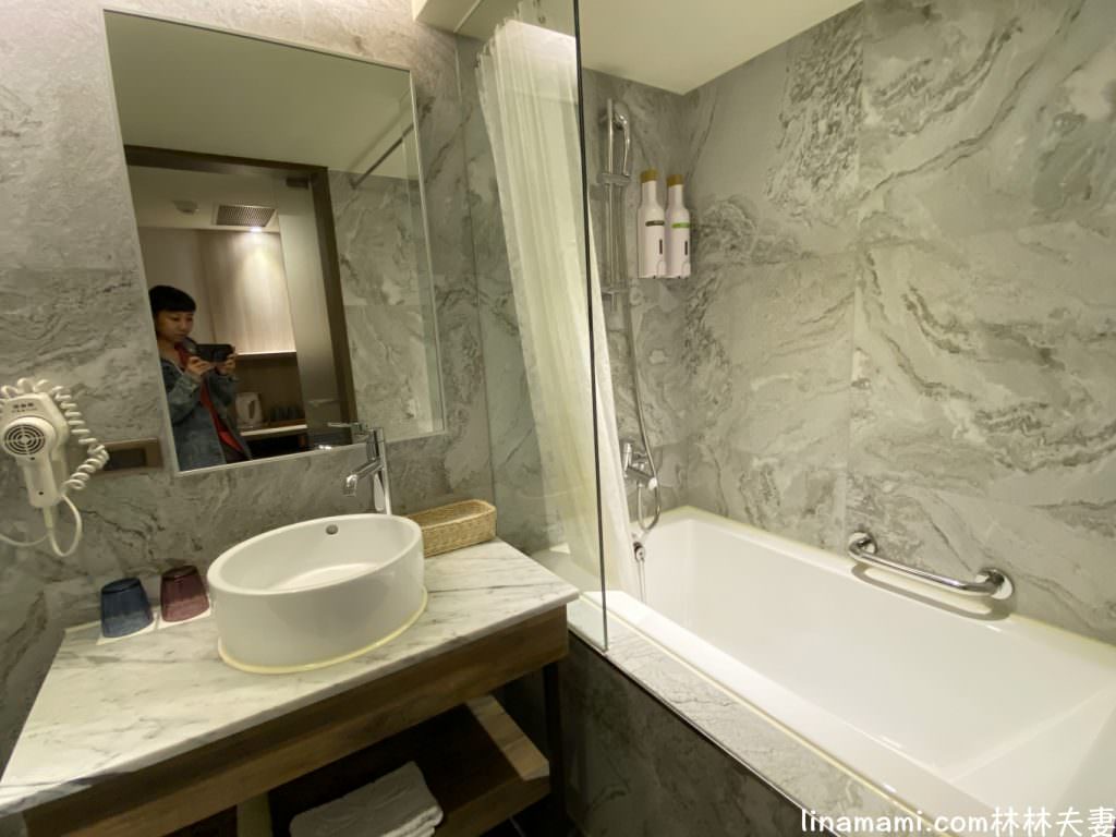 沐浴備品都是拋棄式的,吹風機也是小台壁掛式的,吹頭髮比較麻煩一點,馬桶則是高級的免治馬桶。