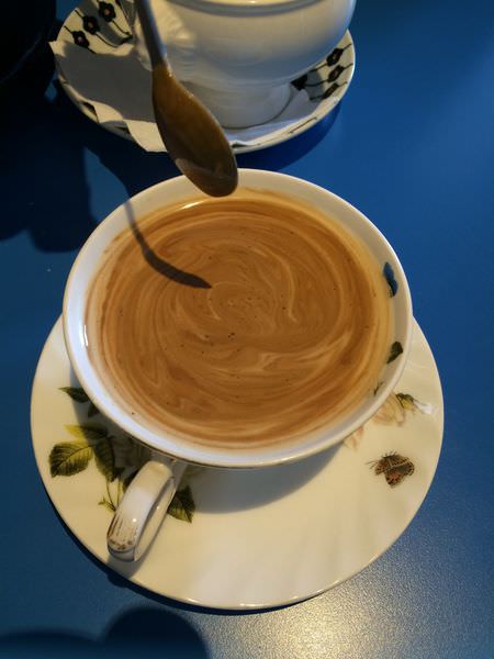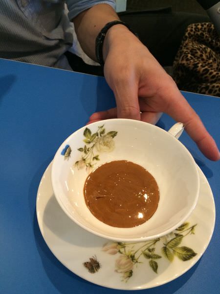服務員送來時,就直接把牛奶倒進去,沒有請我們試咖啡膏的味道。