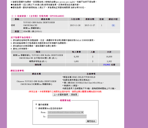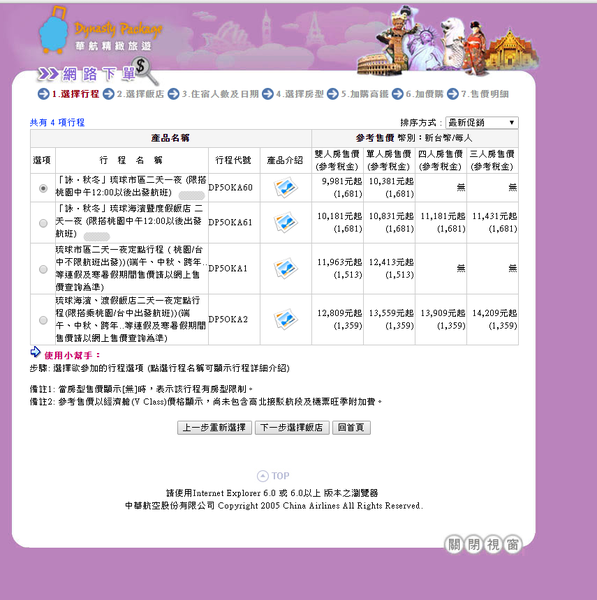 上網做了功課之後,發現華航有出精緻旅遊這種”機+酒”的套裝行程。