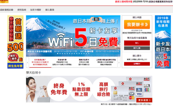 沒想到竟然讓我碰上了樂天信用卡正在促銷新卡友送5日免費WIFI的活動!!!