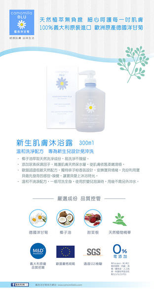 主要成分有來自歐洲原產德國洋甘菊及椰子油萃取天然洗淨成份,易洗淨不殘留。