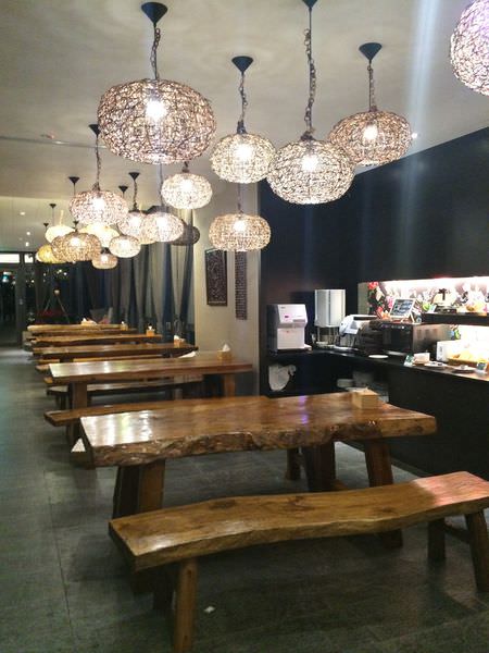 後半部的餐廳運用峇厘島風情的吊燈襯托出異國的氛圍