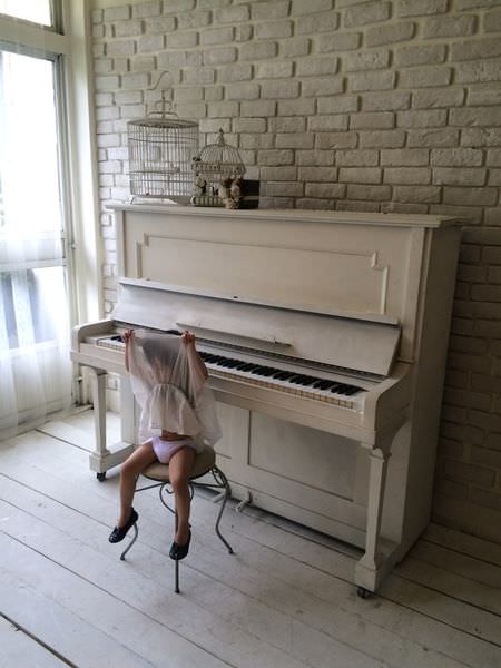 這套打算走氣質音樂風,我們還是在努力地逗她。
