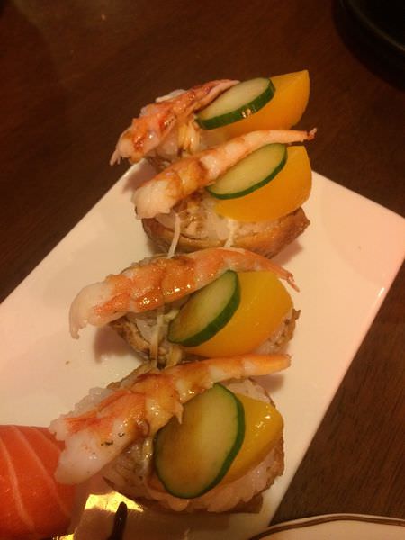 水蜜桃&蝦子&豆皮壽司~~~整個就是為了滿足我這個無法吃生魚片的口慾!!!