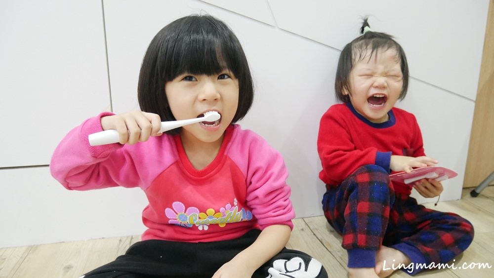 凡凡一拿到兔兔電動牙刷之後,一用就愛上了,原本還擔心她會不習慣,沒想到她非常能接受,還覺得刷牙變得更有趣。刷了好久還捨不得放開,邊洗澡邊刷也不擔心。體積大小很方便收納,出外旅行,攜帶也很方便。我比較擔心小朋友會亂轉開開關,還是建議小朋友在使用的同時,家長能在旁陪同會比較安全。(凡凡拿到新牙刷,淇淇在旁邊不知道開心什麼XD)
