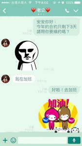 大概每一小時就問ㄧ下兩隻小娃的狀況,一下課就想馬上趕回家,深怕老公Hold不住!不過看到老公傳來的照片就感到安心許多!