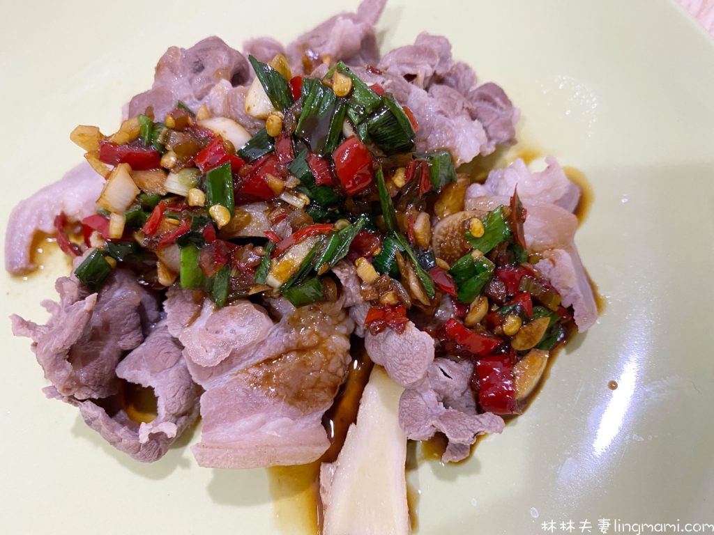 這道菜真的超級簡單又美味,非常適合下酒或是當作涼拌菜,肉片川燙搭上辣醬的調味,減少油膩健康水煮,是個零失敗的美味料理。