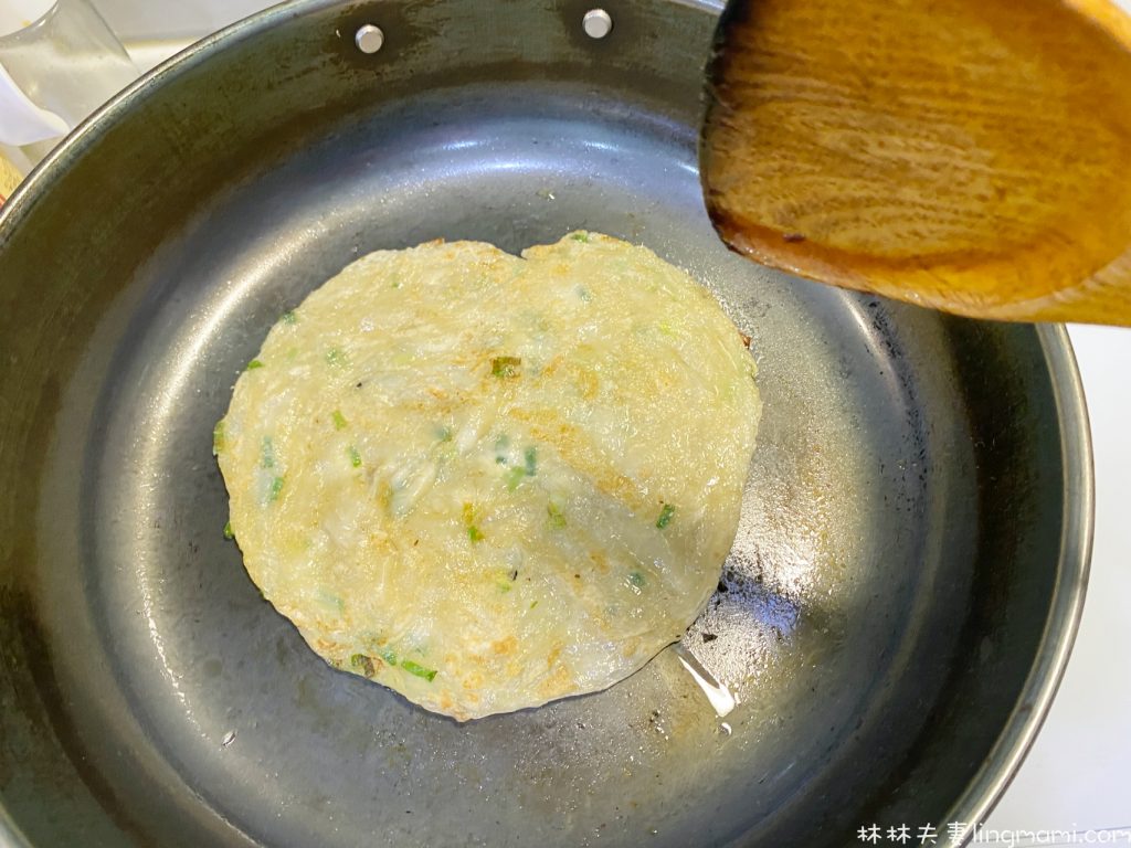 1.先將蔥抓餅煎熟備用