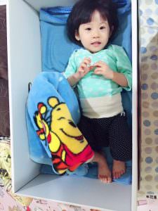 當時看到這個紙箱整個超開心,蠻符合我們的需求,現階段剛好用來當妹妹的小床,馬上排隊去換。