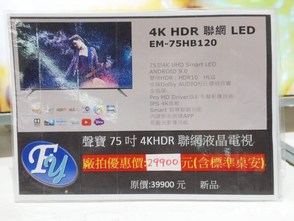 現場最大台的聲寶75吋4kHDR連網液晶電視,只要29900元,廠商非常貼心直接含標準安裝了!!!安裝都不用煩惱~~~