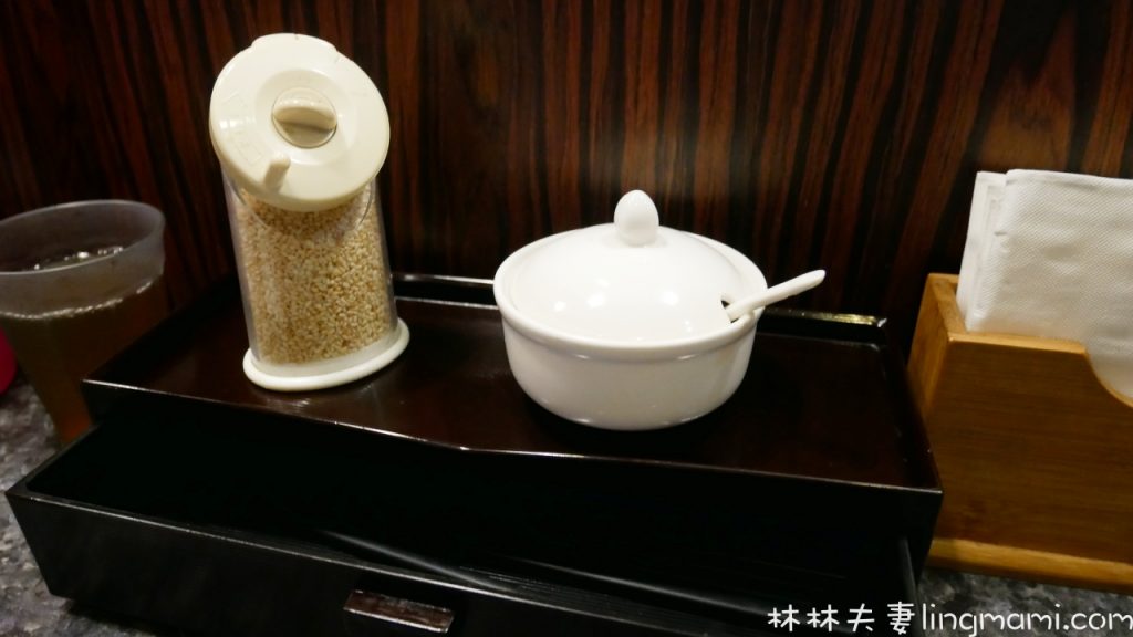 桌上的配料很簡單,就是芝麻粒跟辣椒。