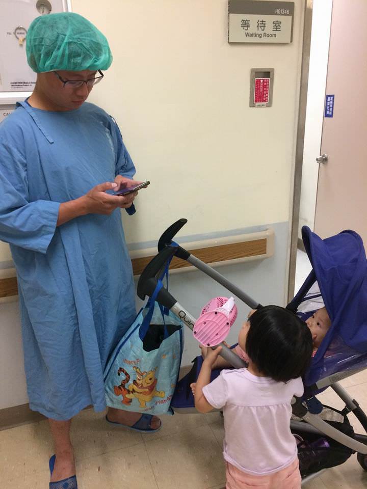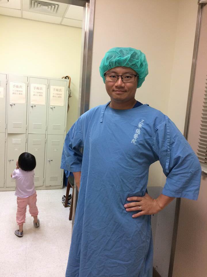 只是老婆不知怎麼著,可能覺得哪有上午看診下午開刀這種事,根本就是我在唬爛吧(啊上次看診你不是有跟我一起來嗎真是…),所以當我剛看完打電話跟她說下午三點動刀等等就回家接她跟凡凡和淇淇過來時,她很是驚訝,一直到真的到手術室看我換上手術服後才接受這個事實…