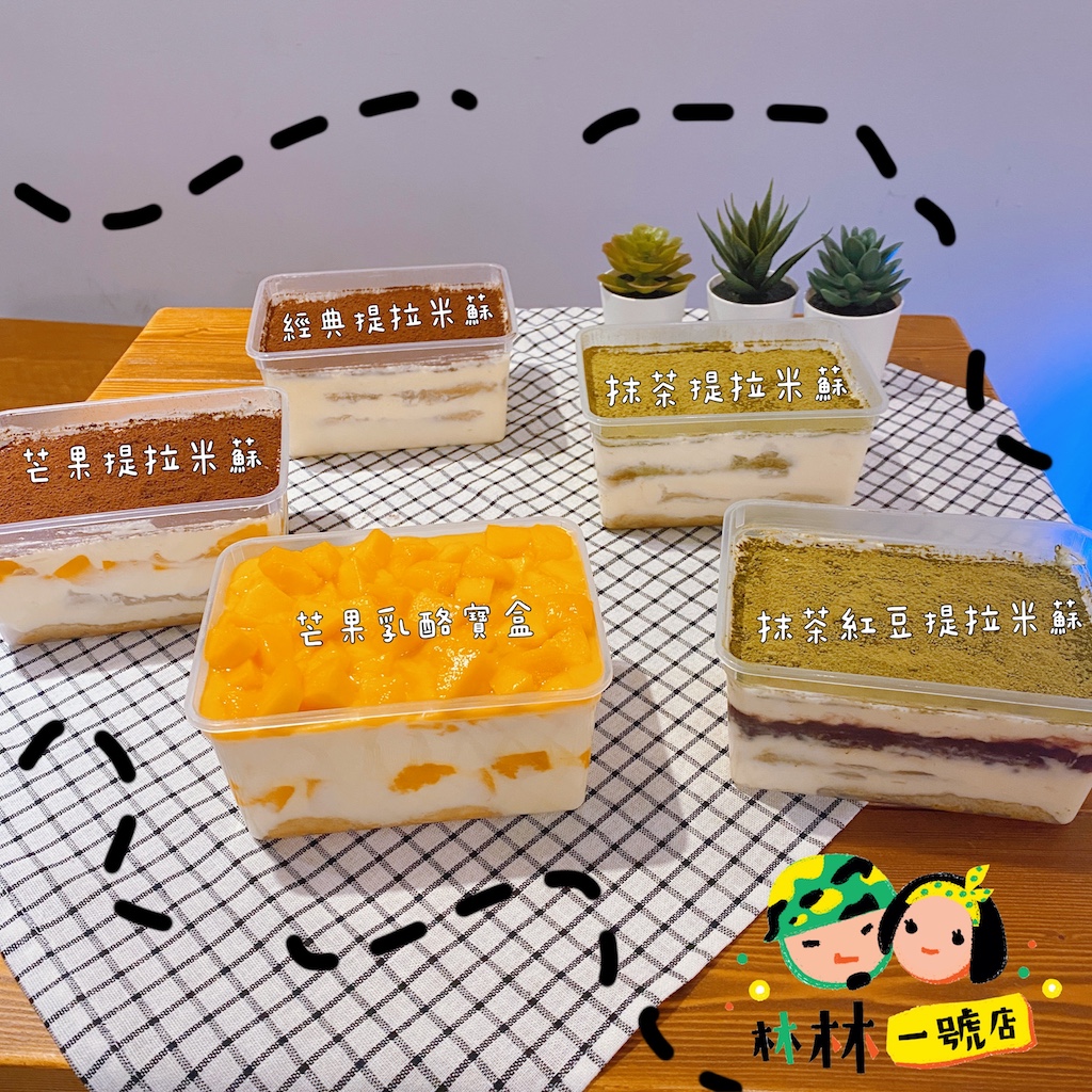 一開始推出的四種口味,經典提拉米蘇、芒果提拉米蘇、抹茶提拉米蘇、抹茶紅豆提拉米蘇、芒果生乳酪寶盒(夏季限定)。