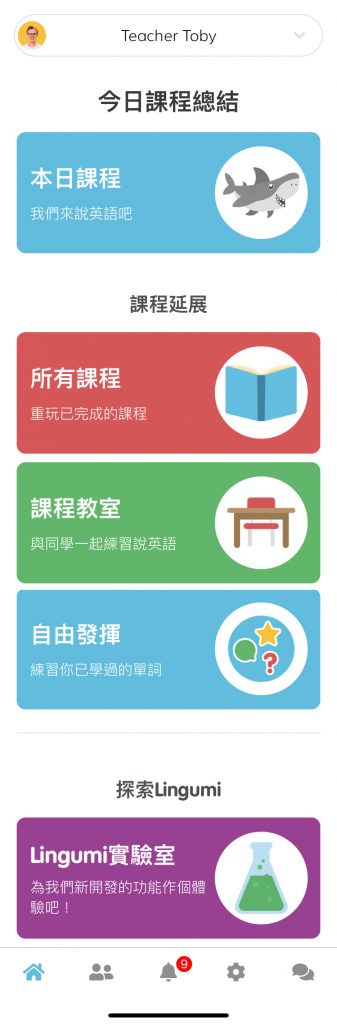 A23:在課程中,有區分學習、口說和英語對話練習等不同的部分,在口說和英語對話練習的單元中,可以錄下同時上傳小朋友講話的影音,也可以回放甚至觀看朋友的影音,或者也能夠和Toby老師作英語對話,這兩個單元會需要網路才能夠使用,但遊戲學習課程的部分則不需要網路,可以在離線的時候使用喔!
