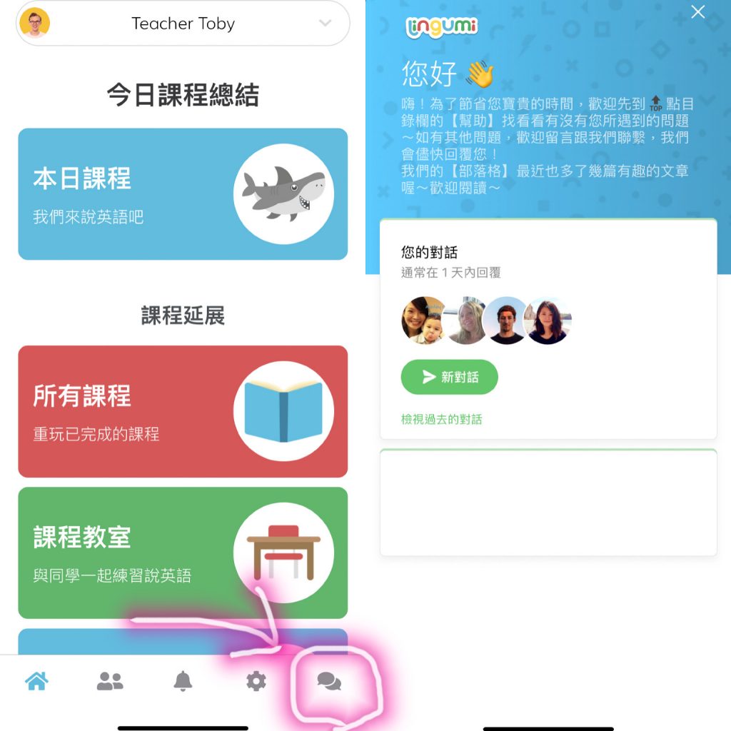 A18:可以在APP設定內同步一下,如果不行的話,可以聯絡客服或直接寫信給Lingumi的客服 support@lingumi.com ,請他們協助處理喔!