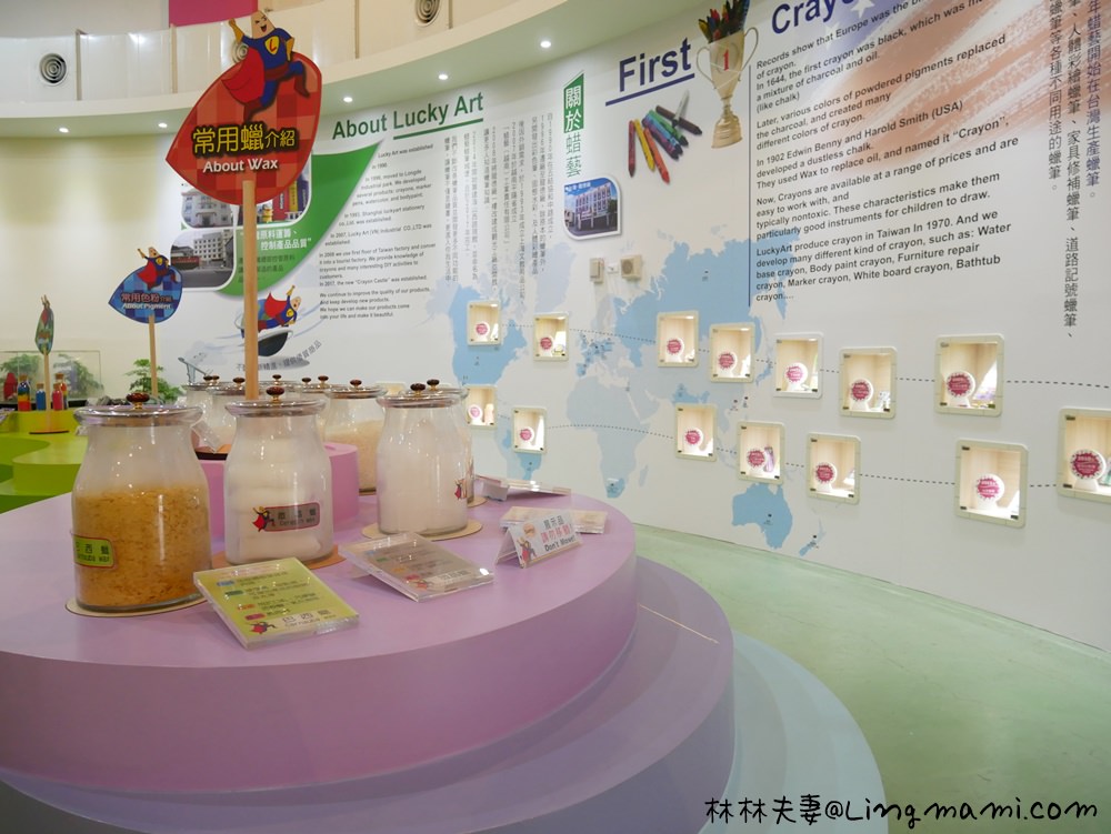 買完票後,到一旁的展示區參觀,有各式各樣的蠟筆原料展示。