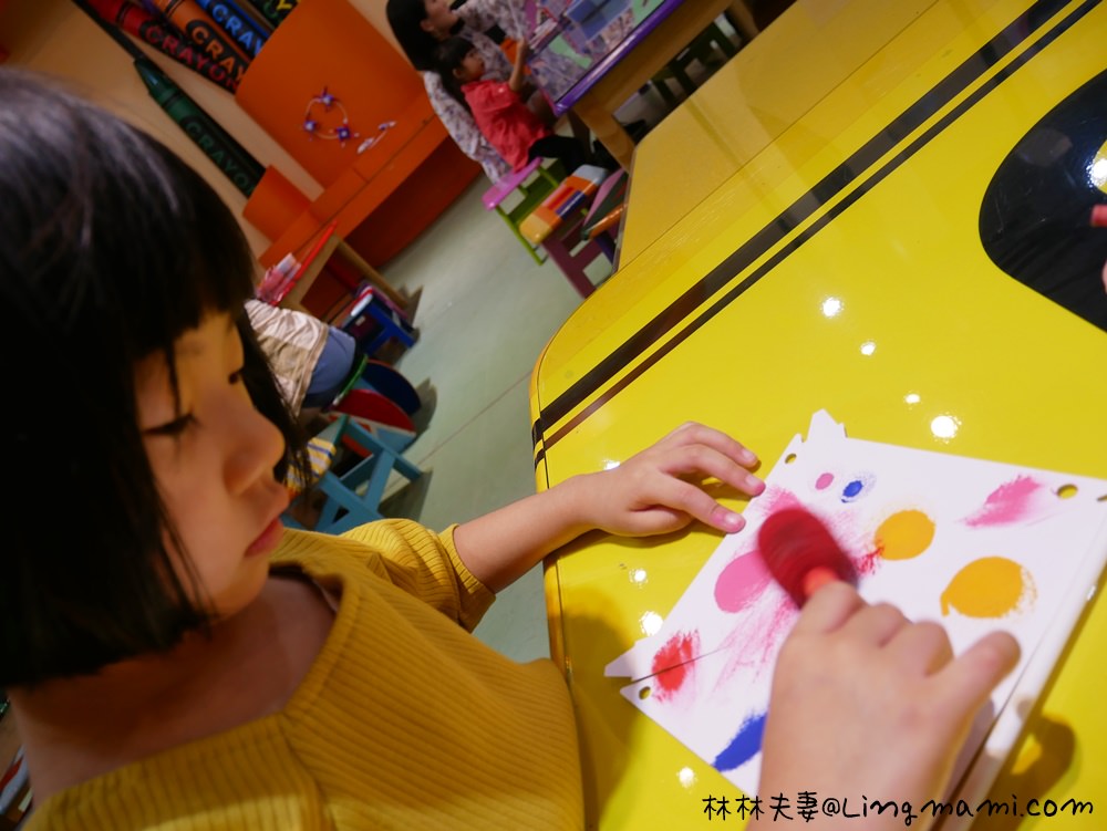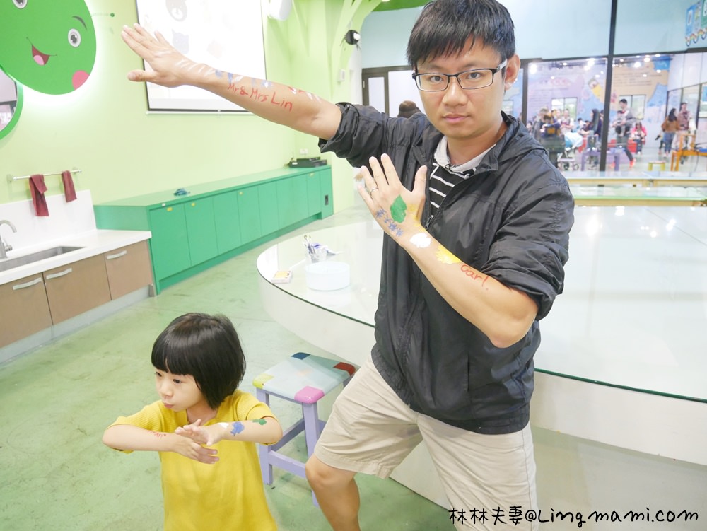 這大概會是最失控又瘋狂的一區,不過不用擔心太多,這些顏料都是用清水就能夠洗淨。老師一開始也都講說如何使用、清洗,小朋友也都可以安心使用,都是無毒的顏料。