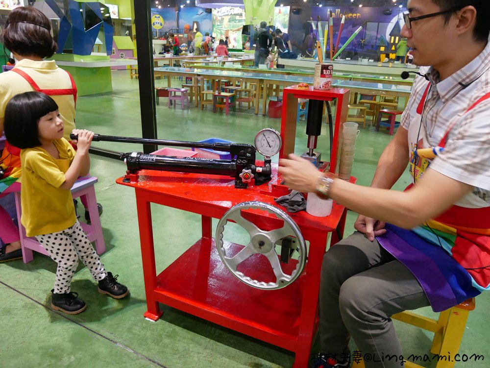 最後到老師那邊去壓成模,除了倒入跟拿出來是老師幫忙之外,小朋友還需要用力壓模跟轉出模型。
