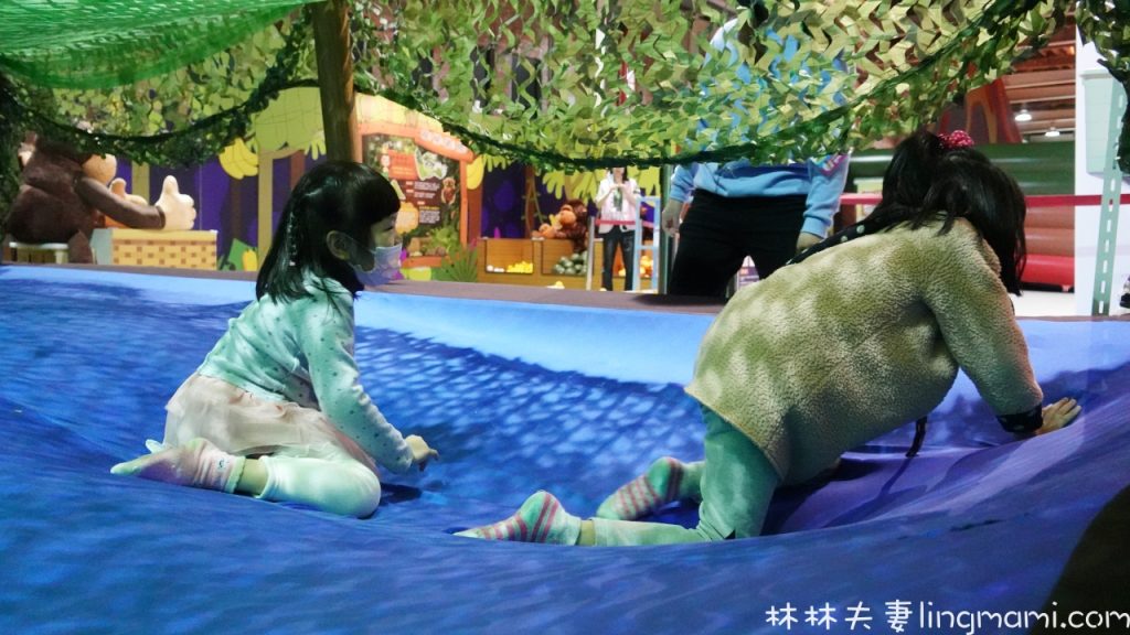 超大的火山氣墊,小朋友最愛的蹦蹦跳跳,還要當作小探險家幫忙搜集火山能量碎片~~~超級耗體力的一關!