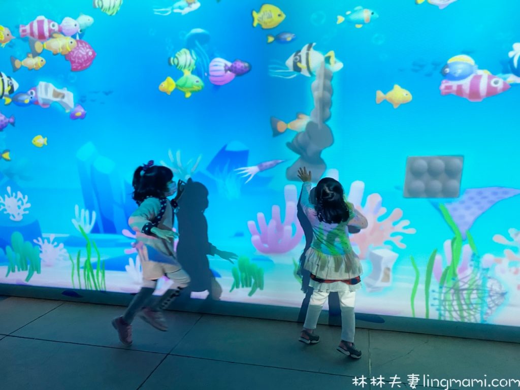 最後還要幫助小魚們消除海洋的垃圾呦,當小小探險隊員們趕快消滅垃圾!超大的互動螢幕,玩得整個超開心的!