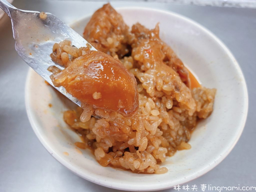 還有搭配鹹蛋黃去增加口感,鹹蛋黃也不乾柴,咬下去有溼潤的口感。