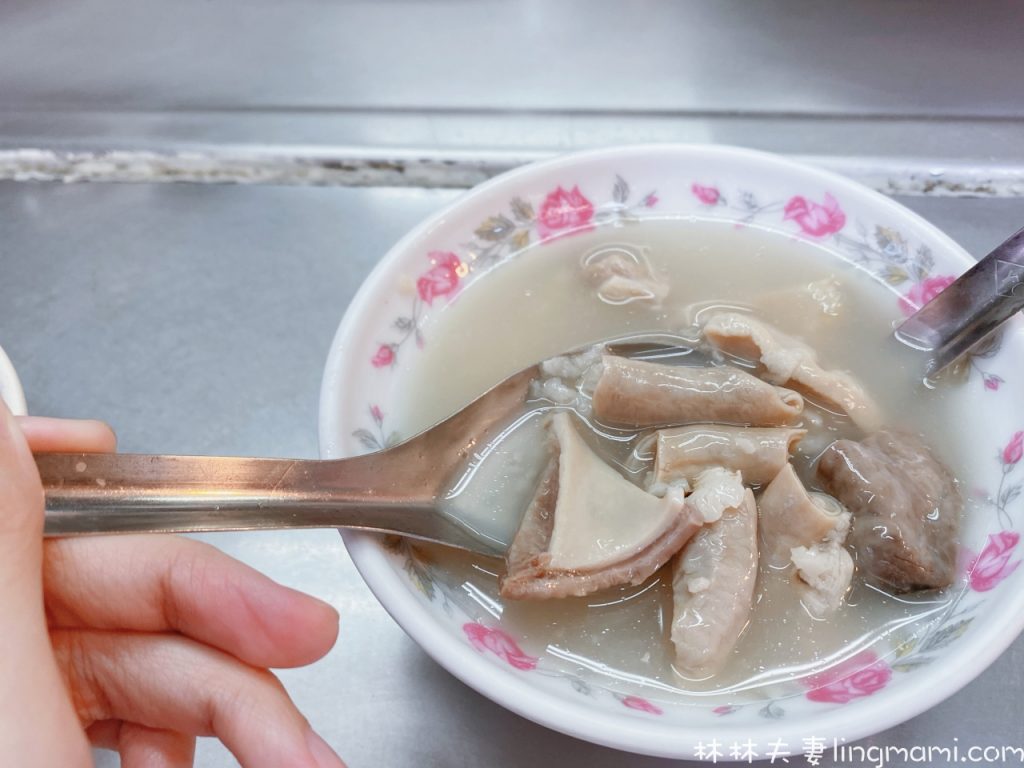 招牌四神湯也非常值得一喝,以豬腸、豬肚、米酒與薏仁熬煮好幾個鐘頭,湯頭味道超甘甜的,豬腸跟豬肚口感也很有彈性脆口。