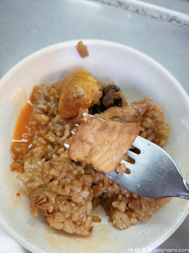裡頭搭配香菇跟瘦肉塊,吃起來真的停不下來,卡爾爸直接一次吃了兩顆肉粽~哈!