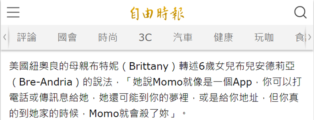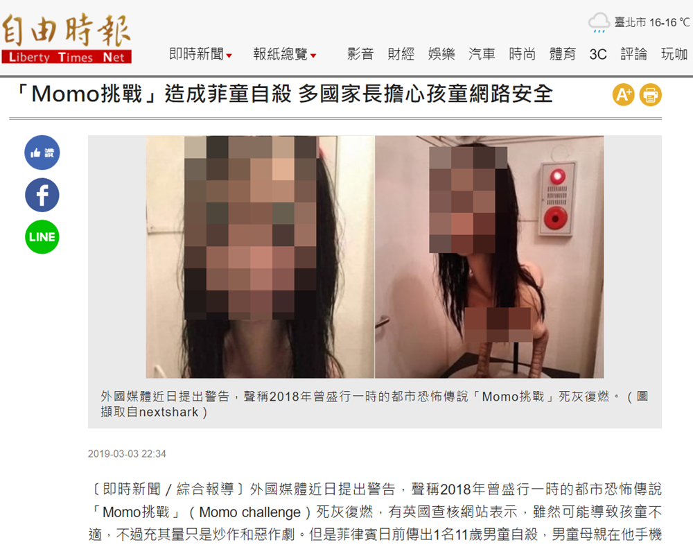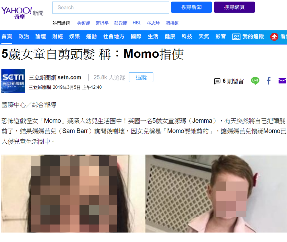 可能遭受「Momo挑戰」實際影響的社會案例?