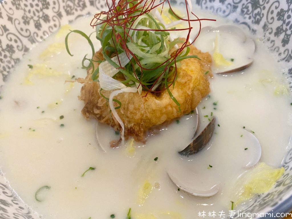 加上最能吸附湯汁的手工麵條,滿滿的蛤蜊鮮甜,讓湯頭層次更凸顯,最後的酥炸蛋,增加酥脆口感又濃醇的全新感受。