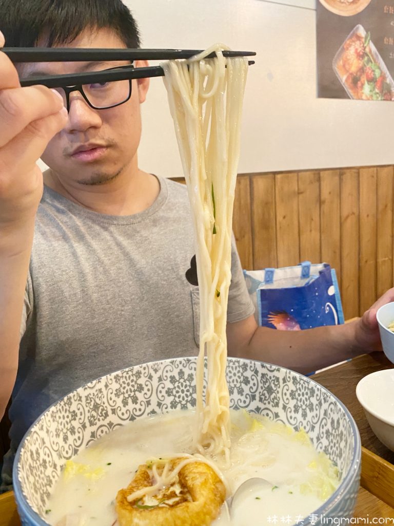 麵條是比較粗的,吃起來Q彈Q彈。值得推薦!湯頭好回甘,忍不住一口接一口~