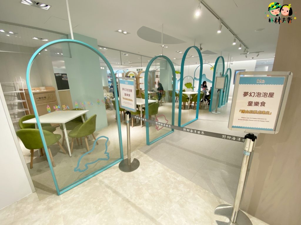一進門的右手邊就可以看到一區超溫馨的用餐區域,童樂食提供提供多種豐富且具有海洋特色的親子餐點,價格平易近人新鮮美味,可以先用餐再進去遊玩。