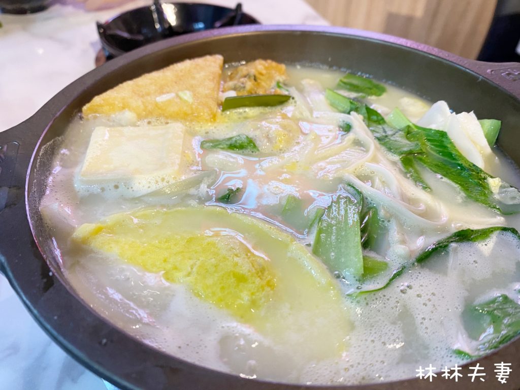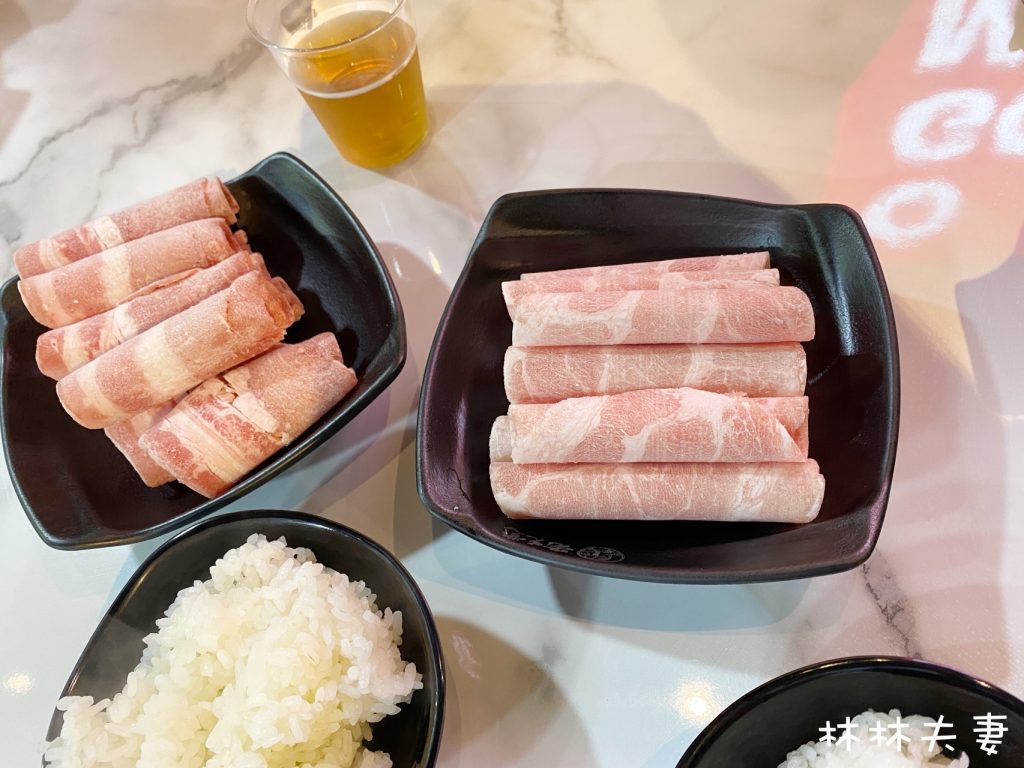 湯頭都還不錯,我們點了兩鍋都是自由配,湯底(牛奶鍋$138+龍骨鍋$128)+標準梅花豬$85、標準嫩肩牛$115,這樣平均一鍋點下來約兩百多,跟市售的小火鍋其實差不多,但湯底好喝又多種選擇跟變化。