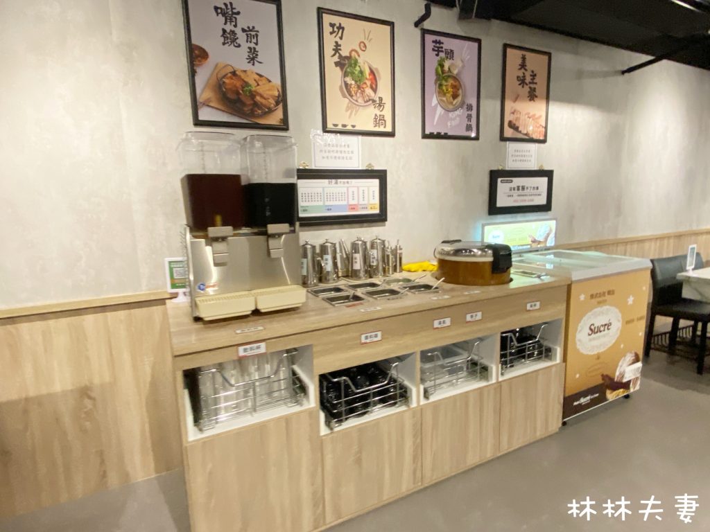 除了獨家湯底的套餐之外,也可以自由配,從湯底到蔬菜都可以自己選擇,就是單點的概念。飲料吧(冬瓜茶、青草茶)、高湯區、醬料區、還有白飯、冰淇淋自助區,但現在疫情的關係,到自助區取用需要戴口罩喔!