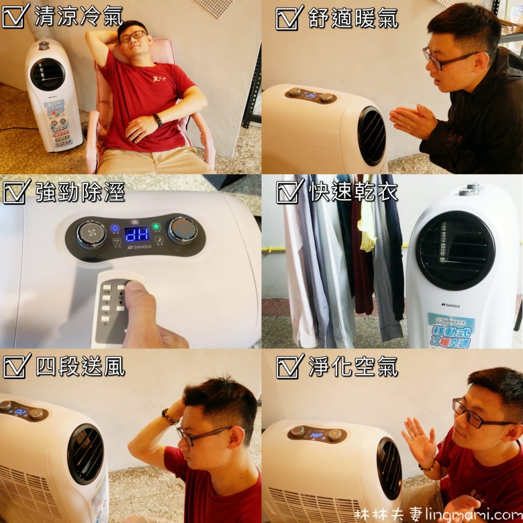 即使說出「六神合體」這專有名詞,很明顯會透露我有點久遠的童年,我還是要這樣說,因為這功能實在是太神、太給他齊全,就這麼一台移動式空調,竟然集結了「冷氣、暖氣、清淨、除溼、送風、乾衣」等六大功能、六效合一,買一台就等於同時擁有「冷氣機、暖氣機、空氣清淨機、除溼機、電風扇和乾衣機」,CP值也太划算!