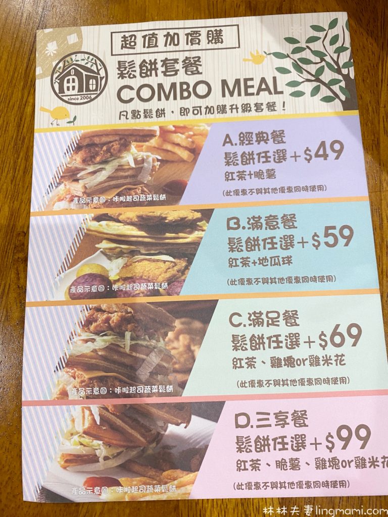 除了單點之外,還貼心的推出超值加價購,點鬆餅就可以加購升級成為套餐。